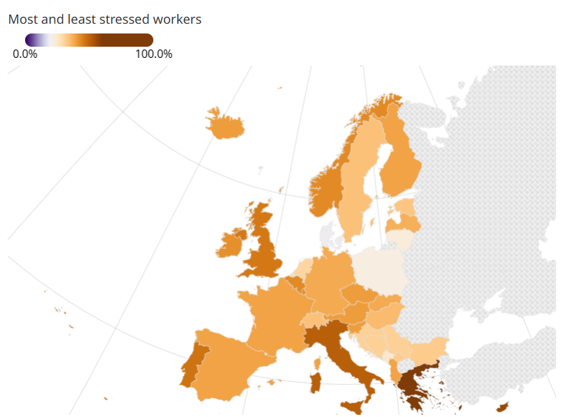 Kad je riječ o stresu, južni Europljani općenito su najviše pogođeni, a najviše razine stresa bilježe Grci (61 posto), Maltežani (57 posto), Ciprani (56 posto), Talijani (51 posto) i Španjolci (47 posto).