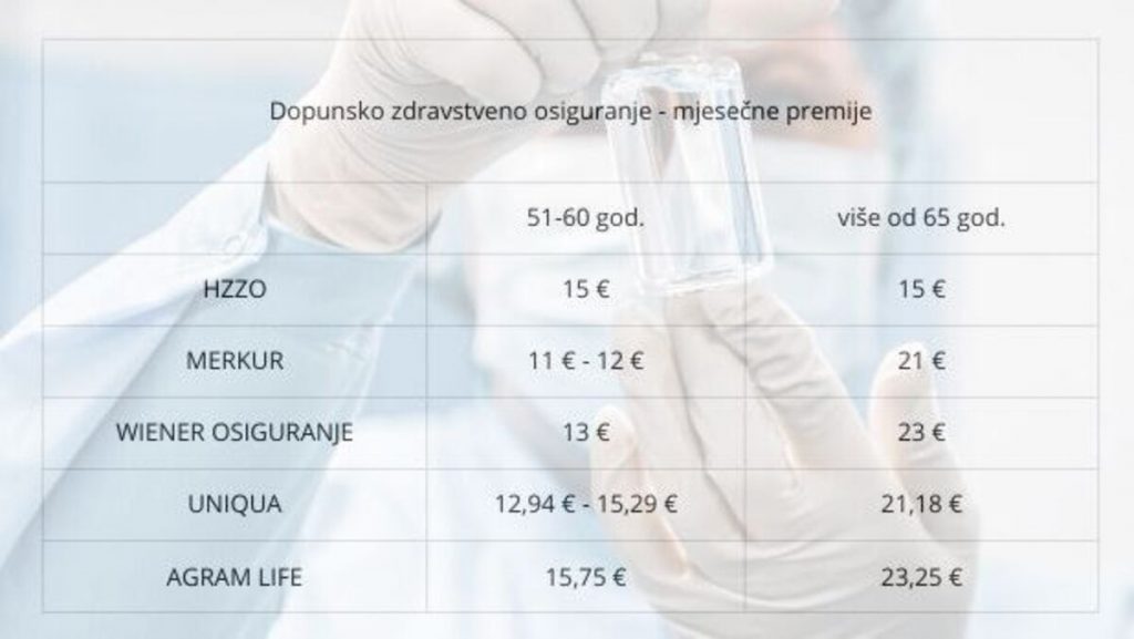 Merkur osiguranje za mlađe osiguranike nudi nešto povoljnije uvjete od HZZO-a. Mjesečna premija za mlađe od 55. godina je 11 eura mjesečno, za one od 56 do 60 godina 12 eura mjesečno, za starije od 60 godina 18 eura mjesečno. Stariji od 65 godina plaćat će mjesečno 21 euro za dopunsko zdravstveno osiguranje.