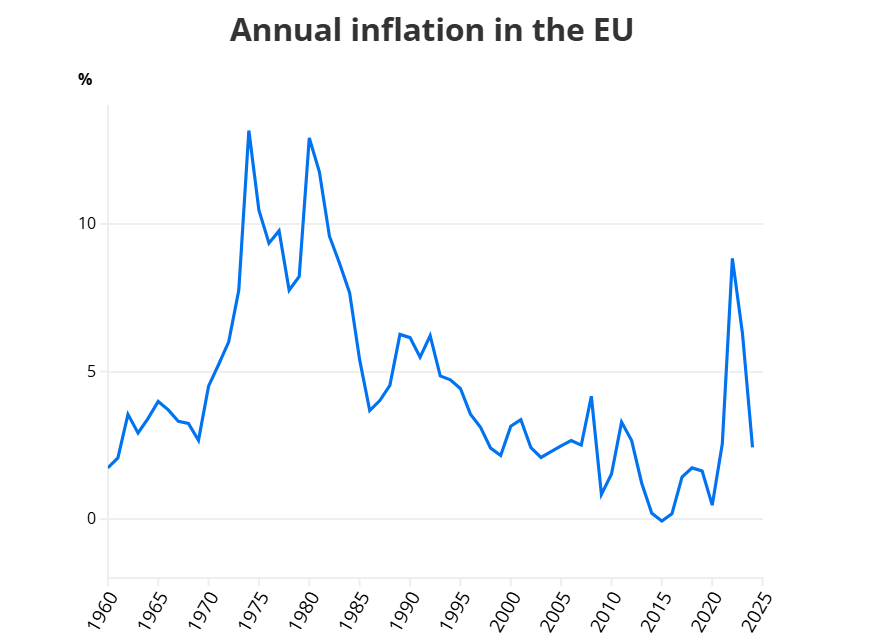 Europska inflacija porasla je 2022. na razine kakve nisu zabilježene u 40 godina. U EU je dosegnula vrhunac iznad 11 posto, uglavnom zbog rasta cijena energije nakon ruske invazije na Ukrajinu. Ovaj porast smanjio je kupovnu moć radnika u razvijenim europskim gospodarstvima jer su potrošačke cijene rasle brže od plaća.