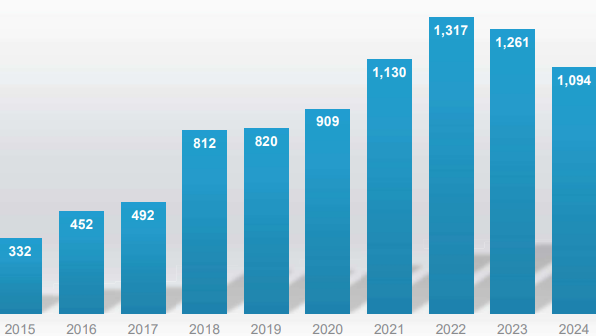 Po podacima IFR-a, međunarodnog udruženja za promicanje robotike sa sjedištem u Frankfurtu, u četiri zemlje koje grupiraju u Balkansku regiju (Slovenija, Hrvatska, BiH i Srbija) instalirano je prošle godine 1.094 industrijskih robota, što je pad od 13 posto u odnosu na 2023. i predstavlja već drugu godinu pada u odnosu na vrhunac iz 2022. kad ih je instalirano 1.317.