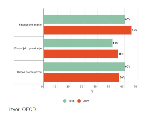 Nažalost, financijska pismenost nije na zavidnoj razini. Od tri komponente u znanju smo najbolji. Nažalost, financijsko ponašanje i stavovi prema novcu nisu na zadovoljavajućem nivou. Ukratko, to znači da znamo izračunati koliko ćemo platiti kamata banci ako smo u minusu na tekućem računu 1.000 eura godinu dana uz kamatnu stopu od npr. 8 % (znanje je OK). Ipak, mi svejedno odemo u taj minus (loše ponašanje). Što se stavova tiče, mnogima novac služi da se olako troši, imamo stav „živi se samo jednom“ i ne marimo baš za sutra.